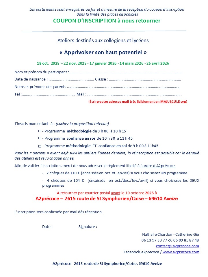 Les inscriptions pour l’année 2025-2026 sont ouvertes.